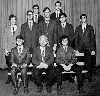 William Pepper reports that in 1940 and 1941 the team participated in what was then known as the Interscholastic Algebra League. Practices were after school, and only once a week (what slackers!). Late screenwriter I. A. L. Diamond used to joke that's what his initials stood for. Some Web sites report that Mr. Diamond competed in the League in 1936, while living in Brooklyn.
